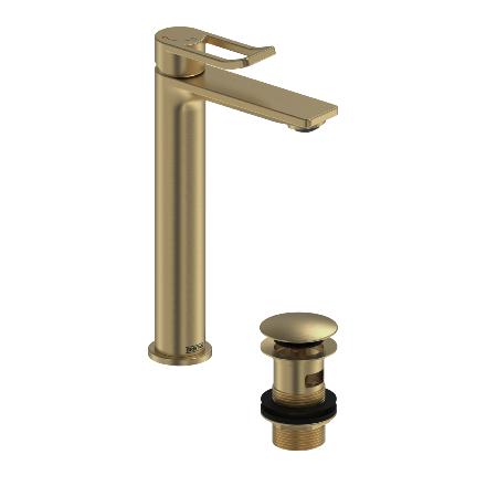 Bristan Saffron Eco Start Tall Basin Mixer with Clicker Waste Brushed Brass Saf ...